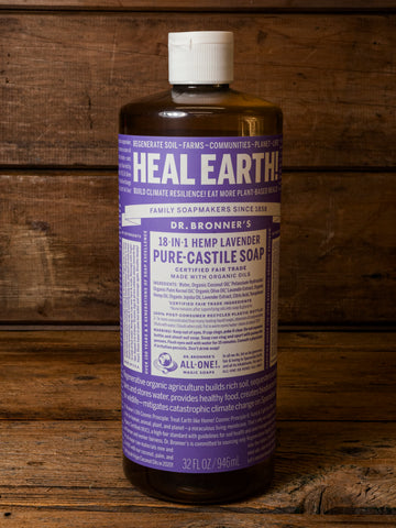 Dr. Bronner’s 18-in-1 Pure-Castile Soaps are good for just about any cleaning task. Face, body, hair & dishes, laundry, mopping, pets—clean your house and body with no synthetic preservatives, detergents or foaming agents—none! Dilute! Dilute! OK!! Need recipes? Read Lisa Bronner's Liquid Soaps Dilutions Cheat Sheet.